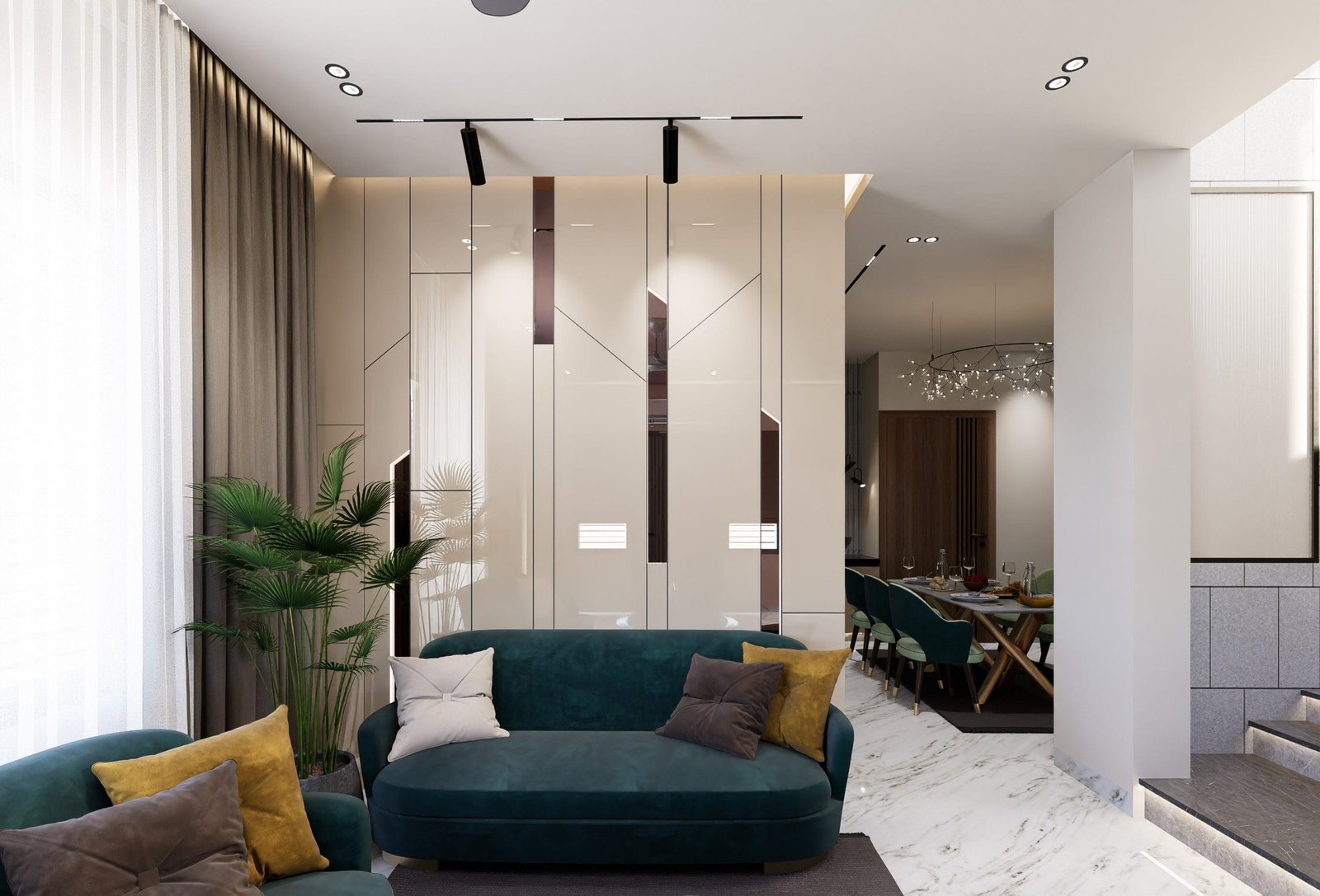 Lighting plays a vital role in the ambiance of Garry’s House. During the day, natural light transforms the space, while in the evening, a carefully planned mix of ambient and accent lighting creates a cozy, intimate atmosphere. Whether it’s the soft glow of recessed lights in the living room or the warm shine of elegant table lamps in the dining area, every light fixture is chosen to enhance the home’s minimalist design and promote a sense of calm.